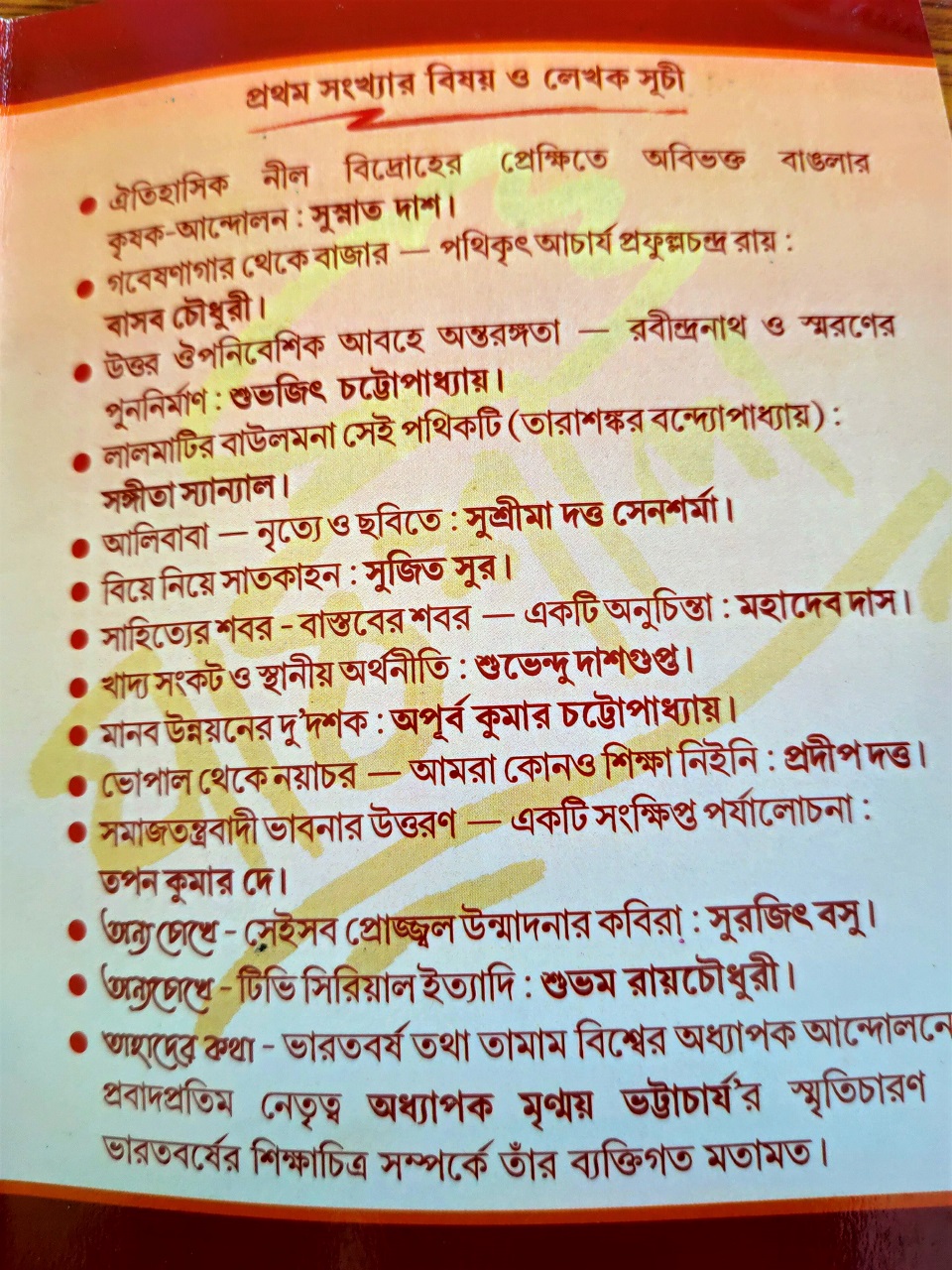 ইতিহাস থেকে বিজ্ঞান-প্রযুক্তি, অর্থনীতি থেকে রাষ্ট্রনীতি, আর অবশ্যই সাহিত্য, নাট্যচর্চা ও চলচ্চিত্রবিদ্যা এবং দেশীয় সংস্কৃতি ও ঐতিহ্য নিয়ে বিশিষ্ট প্রাবন্ধিক ও গবেষকদের লেখা আর তাঁদের সাম্প্রতিক অধ্যয়নের একটি প্রকাশক্ষেত্র এই গবেষণাধর্মী পত্রিকাটি।